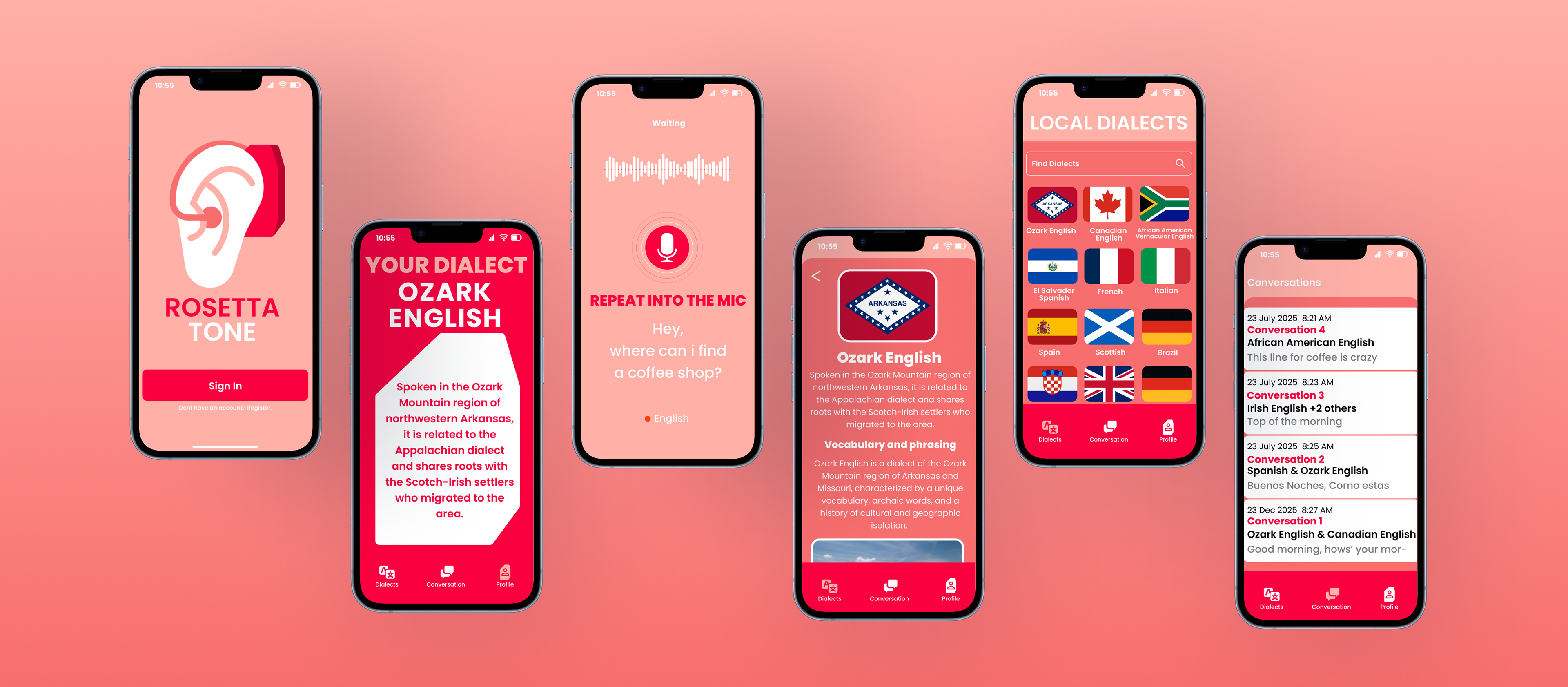 The Rosetta Tone is an speculative app created to allow users to not have to worry about the way they talk and how to fix it but rather to embrace it and discover more about themself.